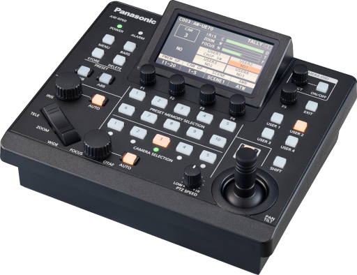 Die AW-RP60 ist eine kompakte Remote-Kamera-Steuereinheit, die zur Steuerung der Aula-Kamera verwendet wird. Sie befindet sich im Aulawagen unter dem Kramer Control Touchpad. Die Kameraeinstellungen können in insgesamt 100 Presets gespeichert werden.